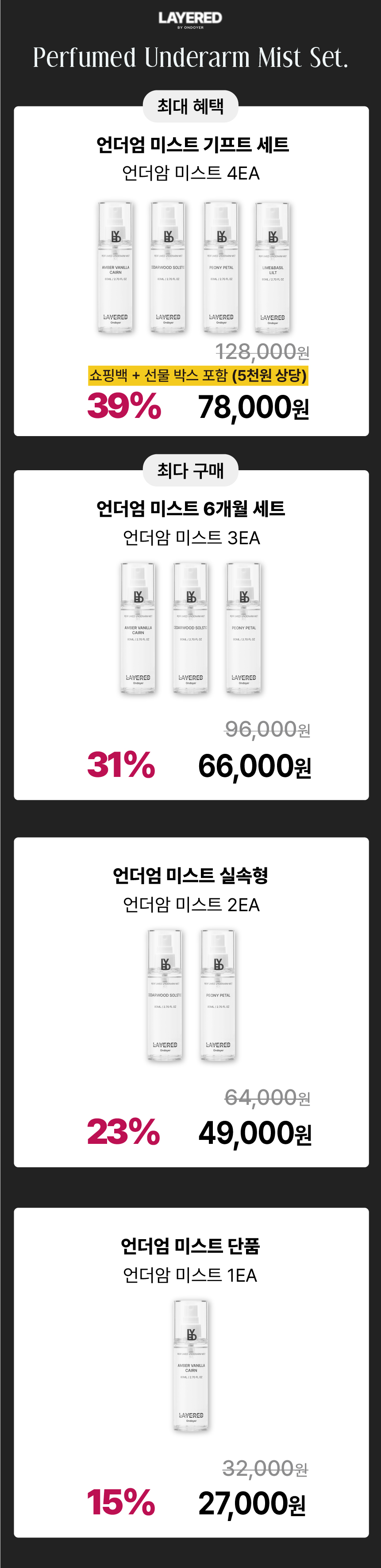 퍼퓸 언더암 미스트 실속형 (2개)SALEBEST오늘출발